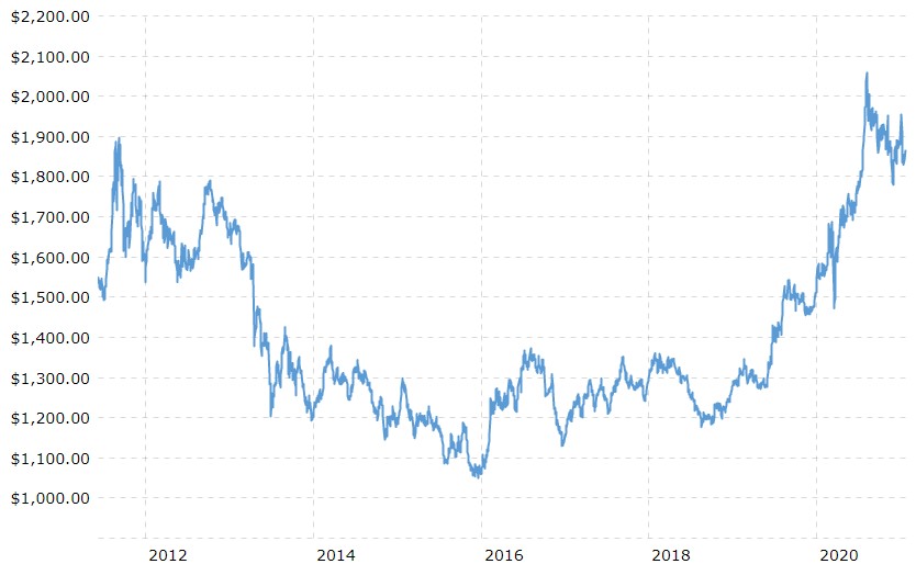 An ounce of gold (see chart above) set a new record high in August 2020 at $2075. Its prior record high was way back in September of 2011 at $1900. This must mean we are in a bull market, correct? Let's check some other data points to be sure...